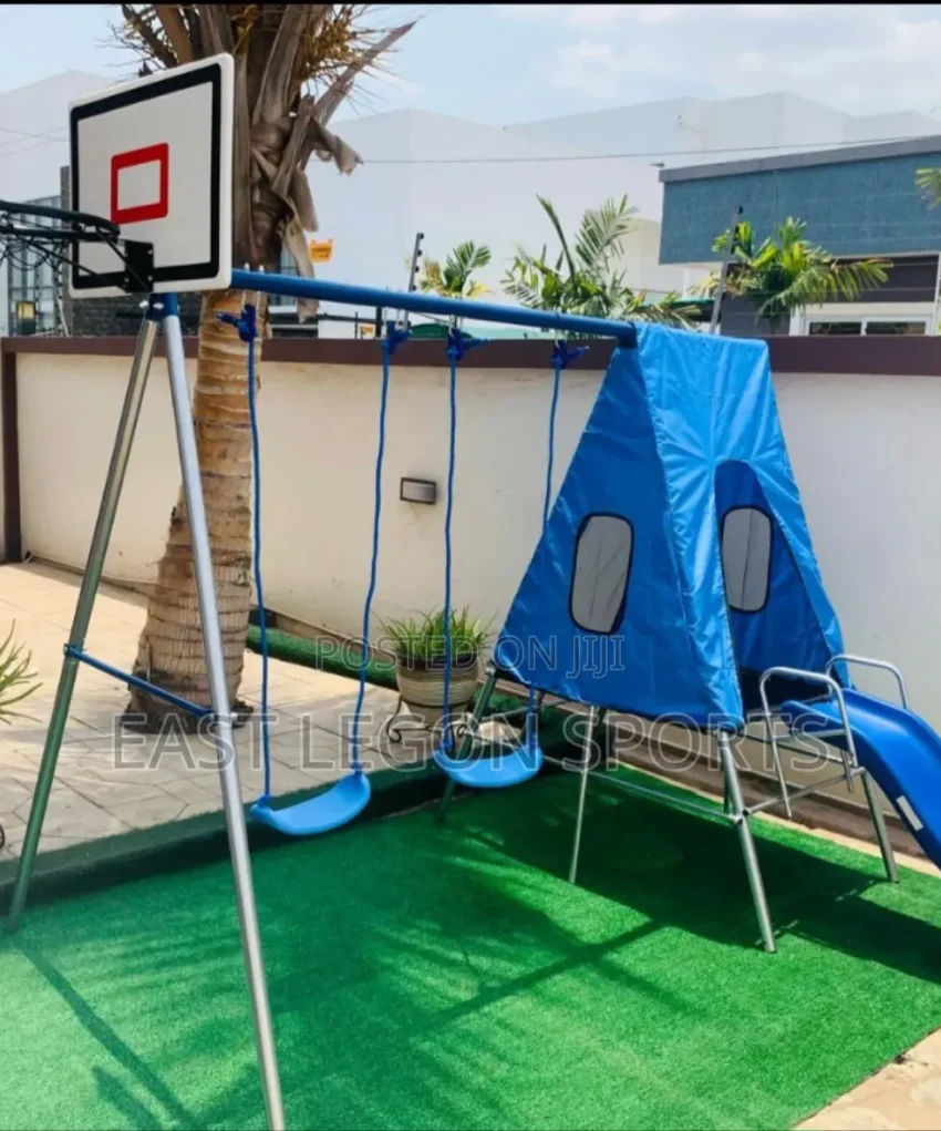 • Full Safety Net Enclosure: Reinforced mesh with vertical poles to prevent falls and keep play secure